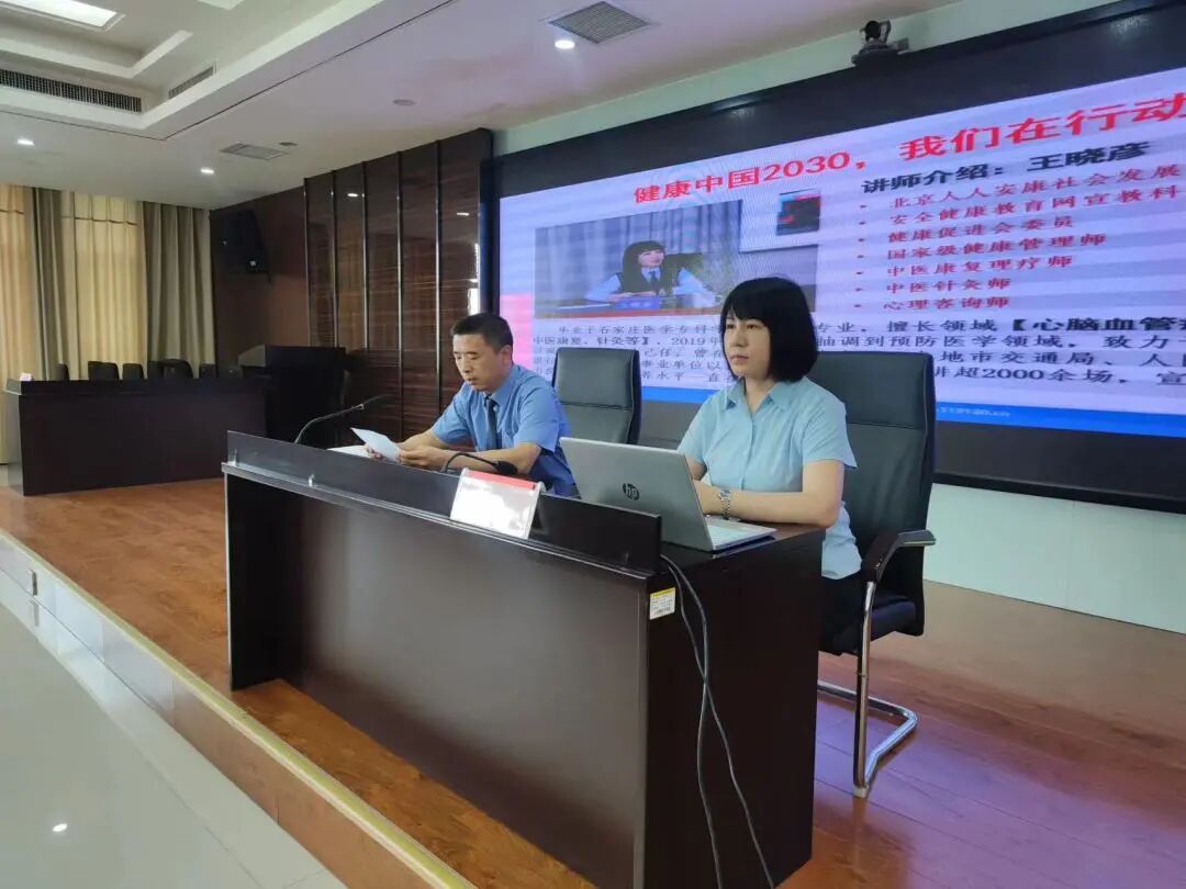 主讲人王晓彦,安全健康教育网河北站宣教科主任、河北公益事业先行者。她通过图文并茂、现场演示、亲身示范等方式传授给在座干警心脑血管疾病相关知识,深入浅出讲解了诱发心脑血管疾病的几种因素以及发病状况、表现特点、早期预防方法等,并且从吃、喝、饮、养等方面提出指导建议,获得在场干警一致好评。她倡导大家“预防为主”,摒弃“小病拖大病扛”的错误理念,从日常生活中低头看手机、不爱运动、饮食不规律等习惯入手,健康饮食、规律作息、适度运动、保持良好心态,王晓彦主任用自己深厚的理论功底与丰富的宣讲经验传授了健康生活理念。