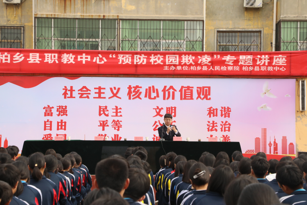 此次宣讲的主题是《拒绝校园欺凌、争做文明少年》,检察干警王俊虎以近年来网络曝光的各类校园欺凌典型案例为切入点,围绕“什么是校园欺凌”、“校园欺凌的种类和危害”、“校园欺凌的法律责任”、“如何避免校园欺凌的发生”以及“校园欺凌发生后如何更好保护自己”等五方面内容,进行了生动讲解。以通俗易懂的语言引导同学们树立法治观念,面对校园霸凌懂得拿起法律武器,勇敢保护自合法权益,将普法工作做到润物细无声。