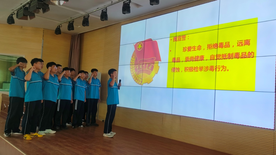 最后,学生代表们集体进行了“珍爱生命,远离毒品”的宣誓仪式,进一步增强了学生们参与禁毒的社会责任感,提高了自觉抵制不良诱惑的能力,树立了健康科学的人生观。