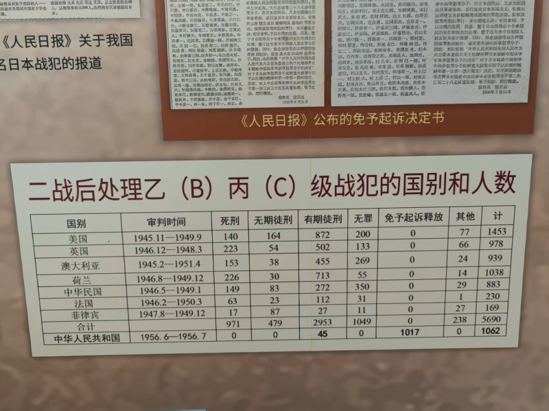 展览负责人介绍,新中国检察机关侦查起诉和宽大处理日本战犯,成功地完成了党中央交办的这一重大任务,并在此基础上发展了免予起诉制度,锤炼了干部队伍,积累了重要经验。在这个过程中,新中国检察机关依法履职,调查取证、审查证据、出庭公诉或作出免予起诉决定,为正义的审判贡献了检察力量,为依法惩处侵略和战争犯罪,彰显和平和正义作出了积极贡献。